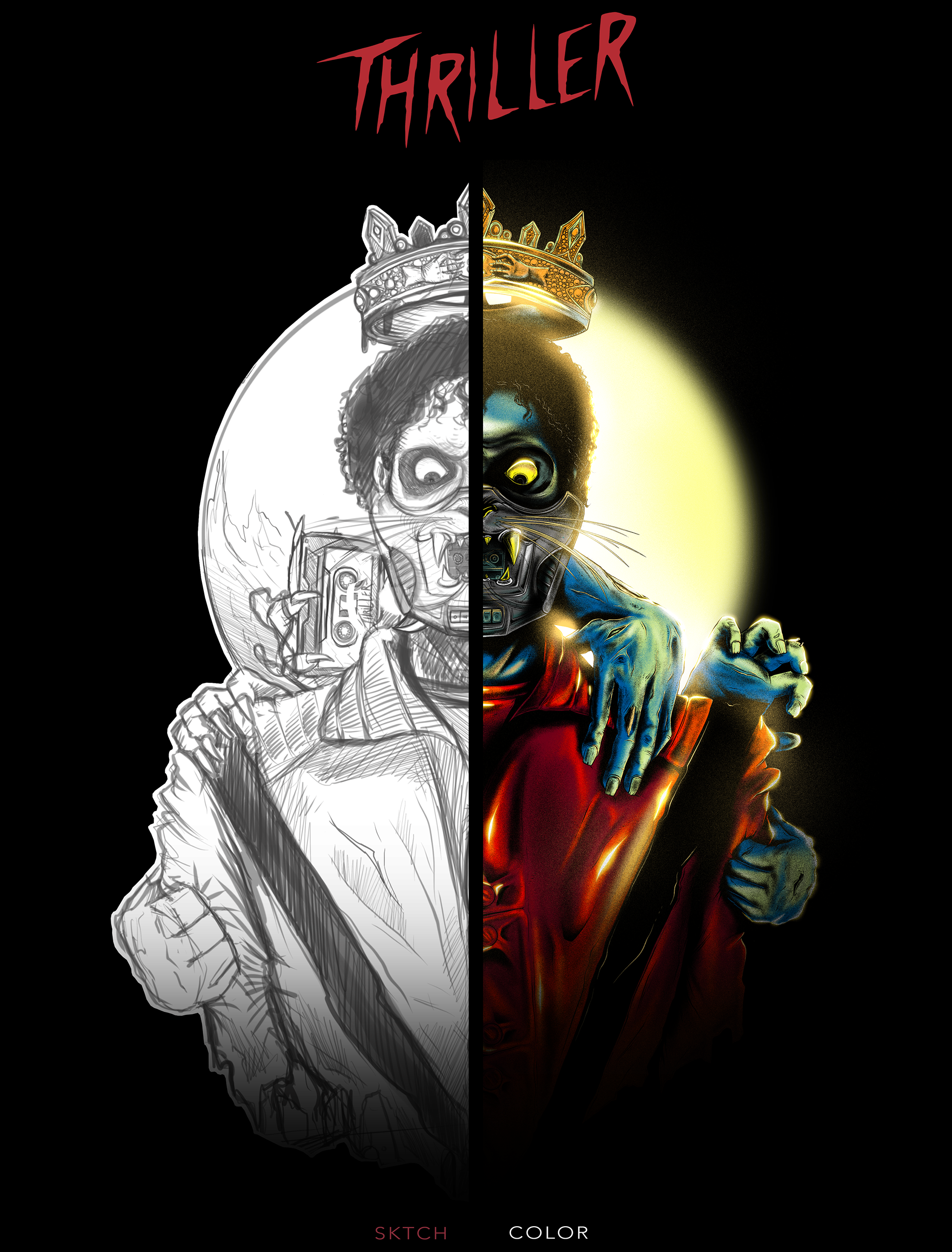 Ilustração inspirada no universo de Thriller, explorando uma interpretação autoral com atmosfera sombria e cinematográfica.
